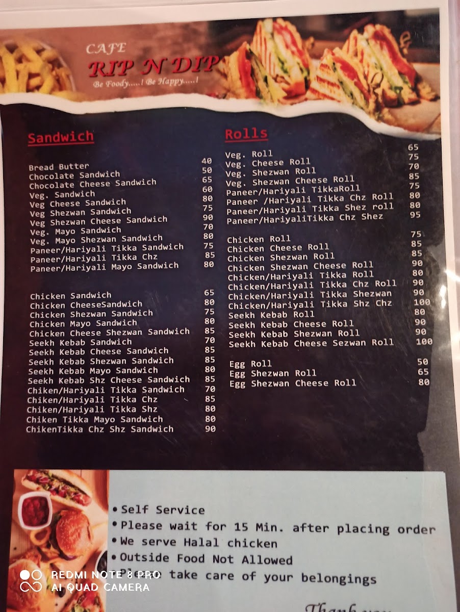 The menu at Cafe Rip N Dip prominently features an array of lunchtime favorites that are both delicious and affordable. From their hearty, cheesy pizzas to juicy burgers, there’s something to satisfy every craving. What truly shines are their standout dishes—succulent chicken wings, crispy fries, and a selection of pizzas, including their rich and gooey non-spicy cheese pizza that has garnered rave reviews for its incredible taste. Customer Vaibhav C. Mhaske highlighted the food's quality, praising its decent variety and quick service, making it a go-to destination for casual dining.
